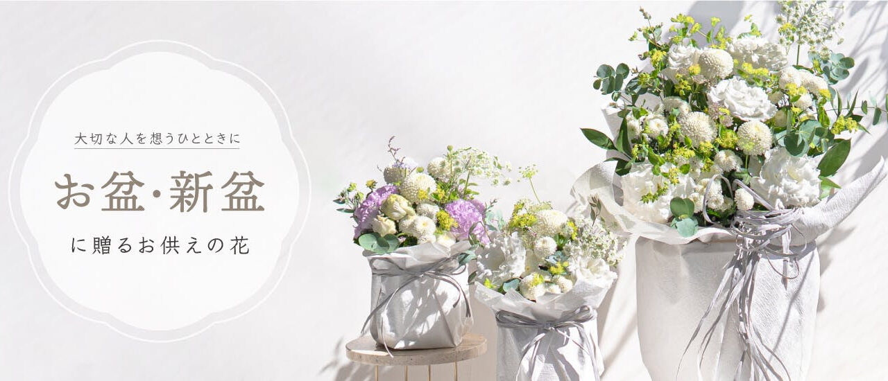 「初盆」「新盆」には白いお花を贈るのが一般的です。2年目以降は、紫や黄色などの淡い色の入った明るい雰囲気のお花を贈ることもあります。