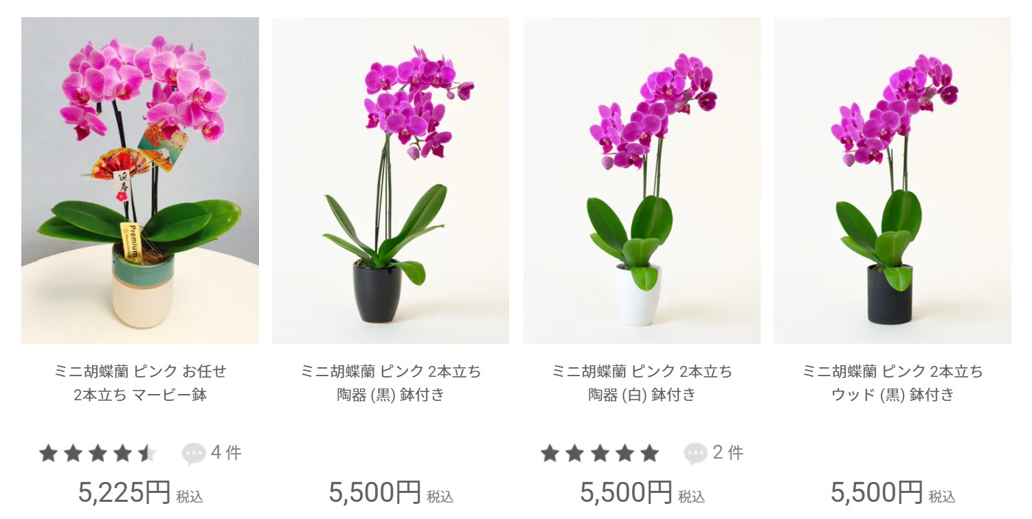 お祝い:ミニマイクロ胡蝶蘭 安い花屋選び:HitoHanaの胡蝶蘭(45品種424商品)以上